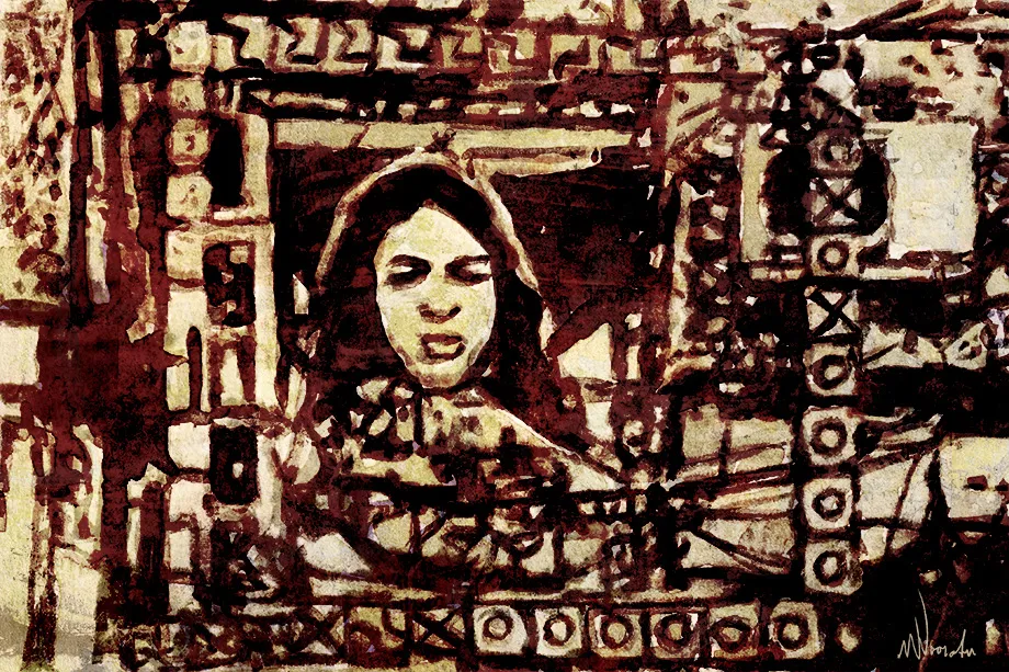 While browsing a book on primitive art, I was captivated by the beautiful patterns and drawings. I incorporated some of these elements into this graphic artwork, in which an African woman takes center stage. Through the interplay of simple shapes, symbols, and lines, the piece conveys a sense of wisdom, intuition, and timeless strength.